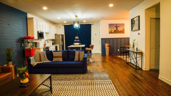 Welcome to The BIG TEX house in Dallas Fair Park, perfect for family events and gatherings. This spacious home features 4 bedrooms, a large living room with a built-in projector for movie nights or game day, and an enormous backyard with hot tub and plenty of space to entertain. With 4K smart TVs in every bedroom, ATT 1000Mbps internet connection speed of , karaoke machine at your disposal - you'll have everything needed to make memories that will last forever.