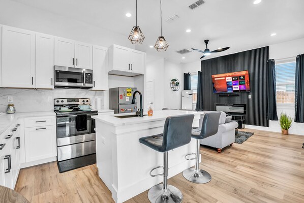 Whether you're preparing a meal, enjoying takeout, or just unwinding, the space supports a seamless experience.
