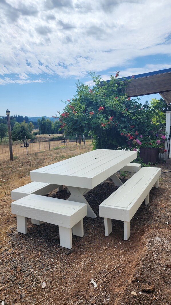Outdoor dining - Oak Creek Acres 3-bedroom house on 12 acres just outside of Dallas Oregon (Dallas)