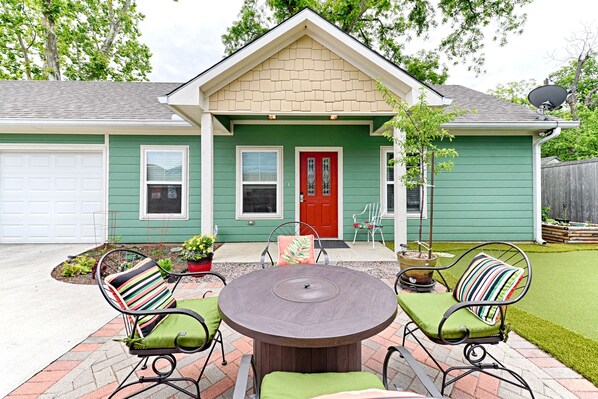 We are located smack dab in the center of the Dallas’s Bishop Arts District. One block from shops, restaurants, and bars. Our 2 bedroom, 1 bath house is promoted as hypoallergenic, so it is non-smoking inside and there are absolutely no pets. The only exception is for a fully trained & certified seeing eye dog. Visitors are welcome to smoke on the patios outside but there is absolutely no smoking or vaping inside the house or the garage. Clean ashtrays can be found in on patio tables outside.