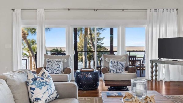 Escape to River Bluff Retreat, a peaceful 3-bedroom, 2.5-bath vacation home located on the Intra-Coastal Waterway at Marker 40. This captivating retreat features its own dock, making it an ideal spot for boating enthusiasts. Experience breathtaking sunsets and stunning views from the spacious covered porch, perfect for sipping coffee in the morning or enjoying cocktails in the evening. Keep in mind that there is no "BRIDGE" to Daufuskie Island, so your adventure begins with your choice of a private boat, ferry, or your very own vessel.