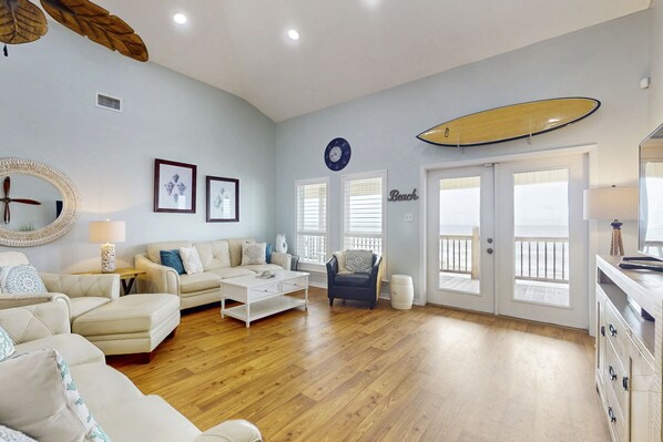 With a water view from every window, Bella Vista offers the perfect beachfront retreat. Enjoy wide porches with morning sunrises and evening sunsets, a dream kitchen for cooking up family meals, and plenty of space for dining. You'll love walking on sugar white sands or exploring activities like kayaking and fishing.