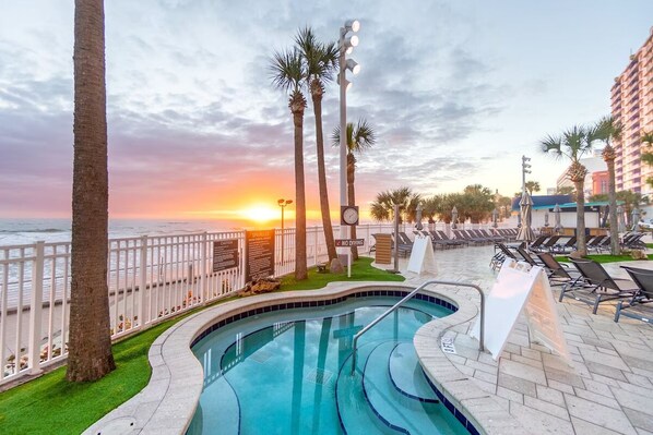 Unwind at this beachside resort with modern units offering jetted tubs and balconies perfect for your Floridian escape.