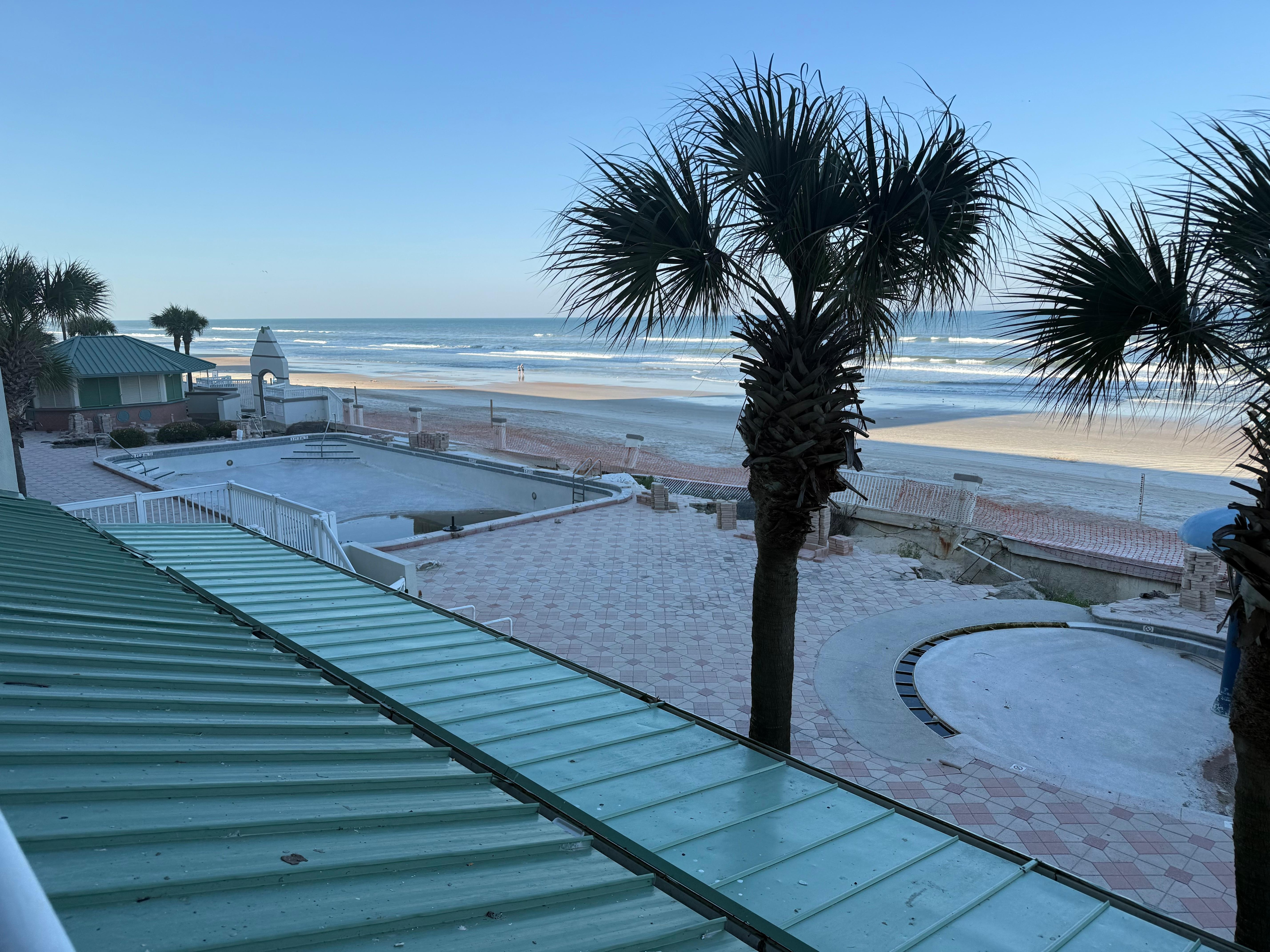 Enjoy Daytona and forget the cramped studios you're used to seeing, this roomy suite has a bedroom space with 2 new queen beds and a separate living & kitchen area with an amazing view directly over the (currently closed) pool to the Atlantic Ocean! Close the door separating the 2 areas for more privacy.