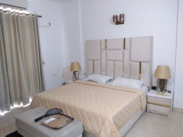 Experience luxury in this 2-bedroom serviced apartment, with en-suite bathrooms and balconies offering pool and garden views. Enjoy the peaceful surroundings while being just minutes from major transport links like the Noida-Greater Noida Express Way.