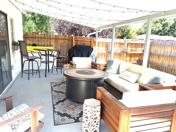 This spacious home includes a patio & backyard with ample seating & fire pit. Book your stay in beautiful Arvada, Colorado!