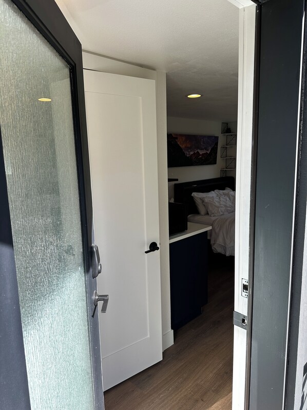 A cool little place, clean and new. Easy parking. Perfect for me, a single guy for a few days in Denver. Access to rooftop deck. A burner for cooking, small refer, brew some coffee, very comfy. Tiny but complete. I’ll be back.