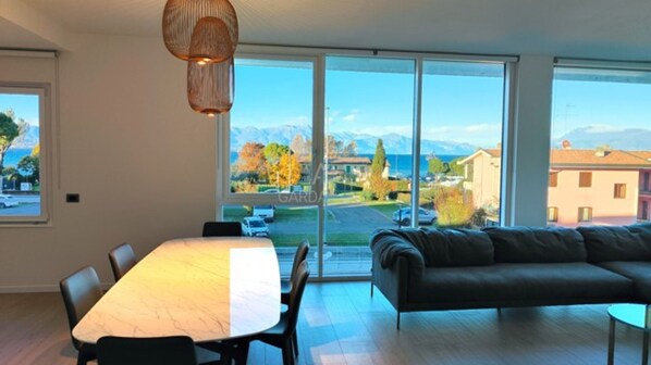 Welcome to the beautiful Desenzano del Garda, where our exclusive villa awaits you for a luxurious and unforgettable stay. Located a few steps from the shores of Lake Garda, you will have the upper floor of an enchanting villa with a large glass window overlooking the lake at your complete disposal. Upon arrival, you will immerse yourself in the elegance of the large garden adorned with classical statues that are reflected in the large swimming pool, perfect for days of pure relaxation. The villa offers convenient outdoor parking for your car.Following the tiled path, you will find the entrance that leads to your dream location. Going up the stairs you will be greeted by a large open-space space. The kitchen, modern and equipped with all the necessary comforts such as a dishwasher, oven, microwave and electric induction hob, is ready to satisfy your every culinary need. In the living room you will find a comfortable sofa ready to accommodate the whole family on relaxing evenings in front of the Smart-Tv or to admire the breathtaking view of the illuminated shores of the lake framed by the starry sky.Continuing along the corridor, four rooms and two bathrooms await you. The three charming bedrooms, two doubles and one with two singles, offer a bright awakening and enchanting views, one of which with a lake view. The two bathrooms are complete with shower and bidet, ensuring privacy for each member of the family. The fourth room is the perfect place for those who need to concentrate during Smart-Working or creative activities; the study, in addition to a desk overlooking the surrounding green lawn, also has a comfortable sofa bed.This villa is ideal for those seeking comfort and a privileged position. With amenities such as private Wi-Fi, dishwasher and air conditioning, everything is designed to make your stay unforgettable.Are you ready to live a luxurious and unforgettable experience on Lake Garda? Book now and let yourself be enchanted by the magic of this extraordinary place. We look forward to welcoming you!CIR: 017067-LIM-00100