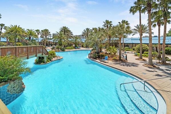 Welcome to Villa Cabana Palms, where relaxed coastal elegance meets resort-style comfort in one of Destin’s most desirable vacation settings. Located directly beside the 11,000 sq. ft. zero-entry lagoon pool, this rare poolside villa offers unmatched convenience and a true resort experience—just steps from your door.