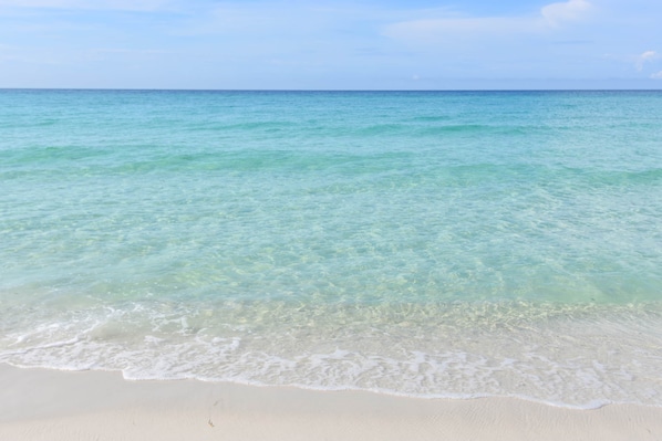 Located at the front of the complex, the beachwalk units are a short few minutes walk to 1,100 feet of private sugar white beaches with complimentary beach service. The unit is also close to the largest pool/hot tub area and putting greens.