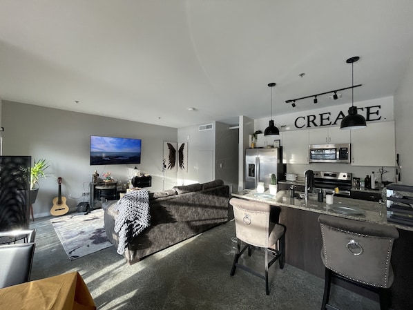Artsy Modern Industrial Style APT provides laundry facilities and more. Stay connected with in-room WiFi.