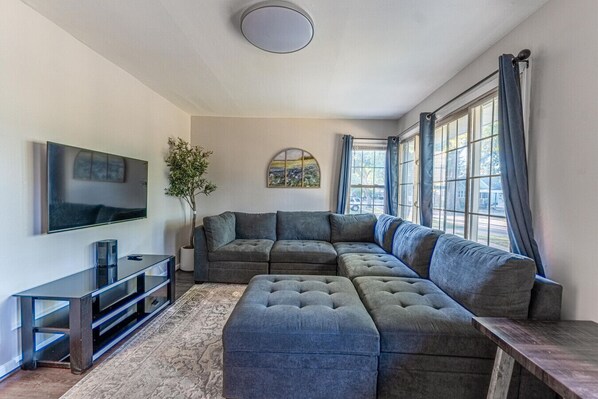 Enjoy the convenience of a washer and dryer on-site and take advantage of the large, open basement for extra space during your stay. The property also includes a fully fenced yard, offering privacy and room to relax.