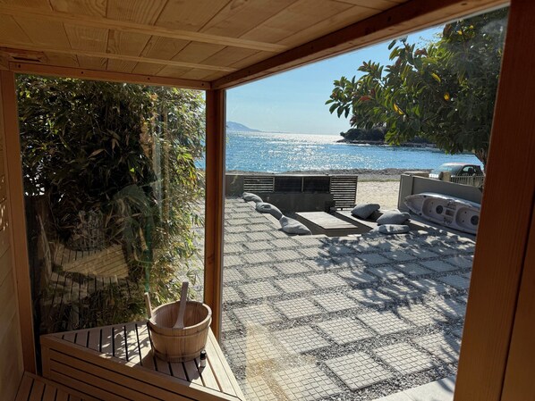 Experience the perfect getaway in a charming, discreetly luxurious villa, Spa Villa Skaloma. Unwind in this spacious two-story retreat with two bedrooms and bathrooms amidst stunning views of the sea and absolute silence. Enjoy modern home appliances, large glass doors that bring the outdoors in and an open-spaced kitchen with branded built-in devices.
