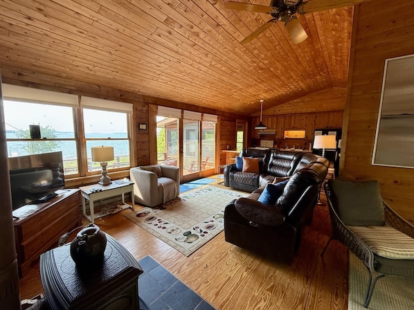 There is a cozy wood-burning stove in the living room and you can enjoy a cup of coffee on the screened-in porch facing the water and then move to the deck (with new Trex decking!) and soak up the sun!