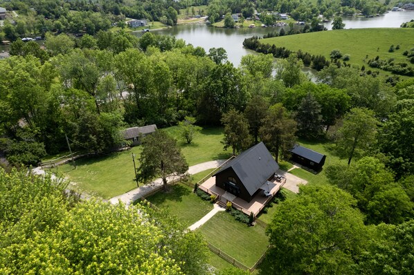 The perfect family friendly cabin nestled in a quiet, country side lake neighborhood, with about an acre of outdoor space to enjoy, fire pit for those summer nights or any season really.
