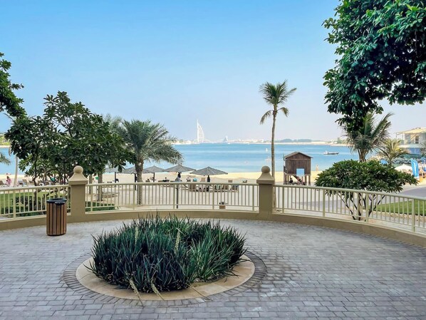 The Space: - 2 Bedroom equipped with king-size bed - 2 Bathrooms attached to the bedrooms - 1 Guest Bathroom - Fully equipped kitchen (including coffee machine, teapot, toaster, microwave, stove, oven, cutlery, dishwasher and kitchenware) - Living room with plush sofa and a flat-screen TV - Dining area - Private balcony - Floor-to-ceiling windows that offer the communal garden view and famous Palm monorail - Personal Towels - Beach Towels - Drinking water bottles