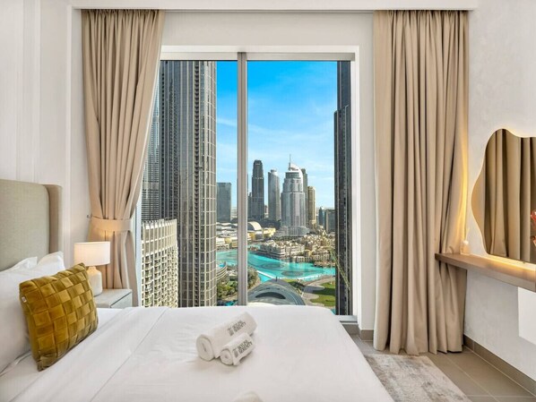 Through expansive windows, be greeted by breathtaking panoramic views of the city's skyline and captivating dancing fountains.