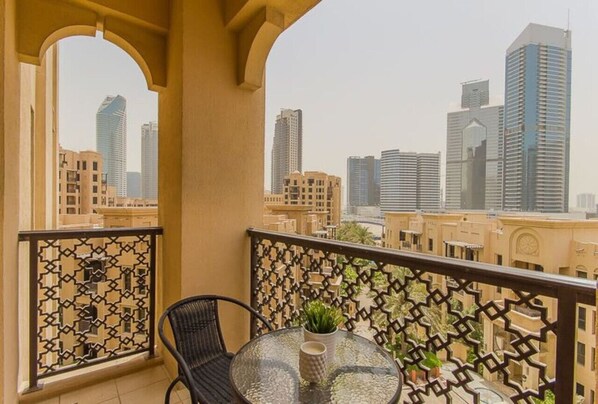 Located in the heart of Old town Dubai, this modern 1 Bedroom apartment offers an aesthetically pleasing space with a broad balcony for outdoor views. The living room features a 3 seater sofa with center table and large flat screen TV, while the kitchen is equipped with a dining set of 4 chairs. Enjoy access to kids playing area and swimming pools.