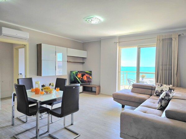 Just a few steps from the beach, our sea view holiday apartment is the perfect place to stay while you explore Durres. You can relax on the sandy shore, enjoy tasty fresh seafood at local restaurants, or go on fun trips around the area. Whether you want to take it easy or try something new, there's something for everyone to enjoy.