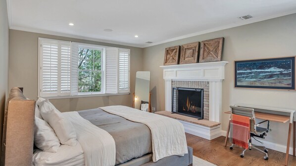 Primary Bedroom: One King Bed, 2nd Floor, Air Conditioning, Full Ensuite Bathroom, Streaming TV, Walk-in Closet