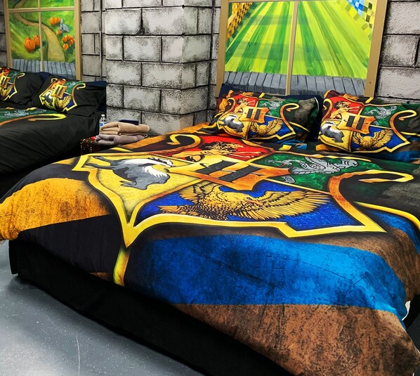 14 fabulously themed rooms with 7 huge fun themed bathrooms. 3,000 sq. foot 50's style dining room!! 3,000 sq. foot free play arcade; You will love Medley Manor! New Recently added rooms are Super Hero, Sports, Star Wars, Groovy and a Double sized Harry Potter room that sleeps 13.