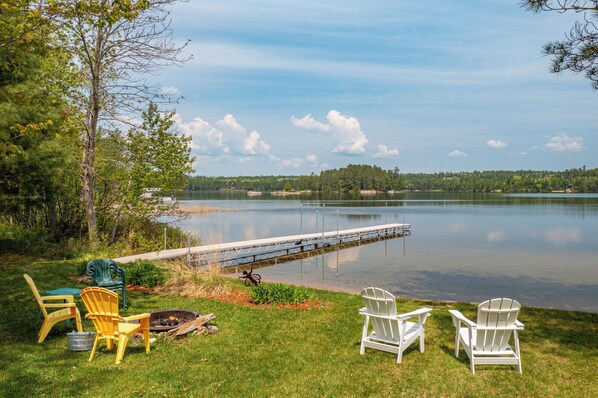 You will fall in love with the landscaping, docks, beach and outdoor patio. There is an 6 person patio table, grill, and several Adirondack chairs outside for your enjoyment. The lake is clear and shallow even quite a distance out from the shore. We will leave you a list of local spots we like to visit on the lake, as well as a map to the snowmobile trail.