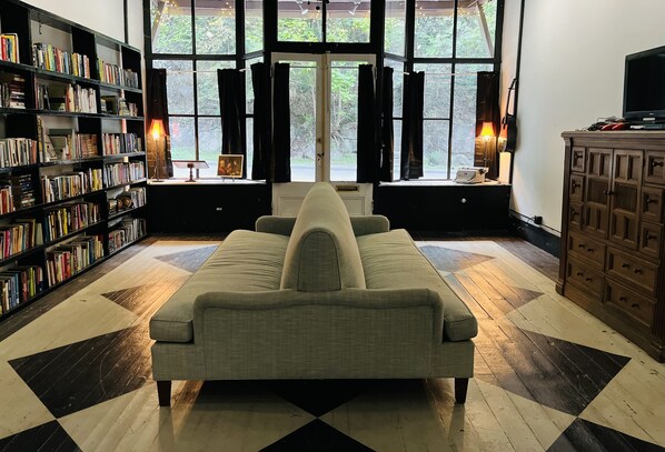 We had a wonderful time during our stay in Eureka Springs. The accommodations were comfortable. Its an historic building, original floors and a few upgrades. The location is perfect. A short walk gets you to most of the shops and eateries downtown; and a short drive gets you to many of the attractions. We enjoyed evening walks, chatting in the park and people watching as they walked by the unit. I love reading and I love books. There is a wall of books. Name the genre/subject. You will find it! We spent several evenings sipping wine and reading on the comfy cool sofa! You will enjoy the nostalgic journey in this historic 1885 building.