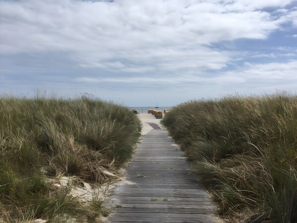 South Beach is just a few steps away, with its wide sandy beach, promenade, beach chairs, playgrounds, and a variety of leisure activities. On the other side, you’ll find the Burgtiefe marina with its observation tower, maritime atmosphere, and beautiful walking paths.