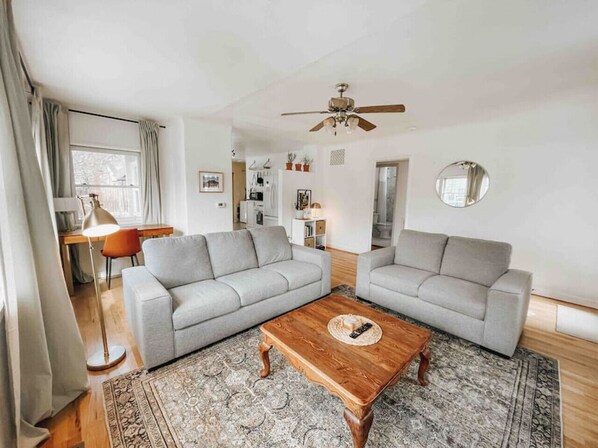 Nestled in the heart of downtown Flagstaff, this charming 1940s cottage offers a comfortable retreat. Enjoy original hardwood floors, plenty of natural light and a spacious two-bedroom layout with eco-friendly amenities. The backyard features a BBQ grill & outdoor table perfect for relaxing after exploring nearby parks, hikes and attractions.