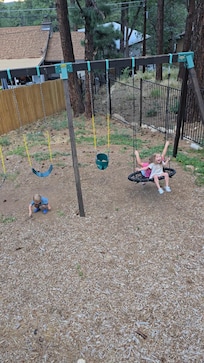 The interior of the house is very nice, and well stocked. There is a good swingset in the backyard, for families with littles. Also a large deck for outside seating. The LR & DR seating was great. Very comfortable, and accommodated several people. We were a party of 6 adults, and 3 littles under 3.The 4 bedrooms, beds and bedding were great. There's a nice laundry if needed. I gave it 4* instead of 5 for cleanliness, only because of the outside decks had allot of spider webs. But the inside where it's important was spotless. It's hard to get it all, and at least the most important part was taken care of with an A.The owner was really great about communicating, and accommodating our requests.Location is out of town, but it's not that far of a drive to go into Flagstaff. We were familiar with the location, and knew we weren't going into town much, so it wasn't an issue.Overall, highly recommend.