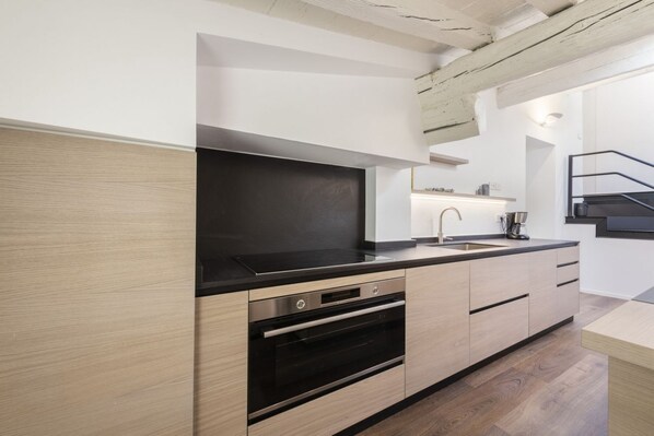 Fridge, oven, stovetop, cookware/dishes/utensils - Greci Terrace luxury apartment in Florence by Mmega (Firenze)