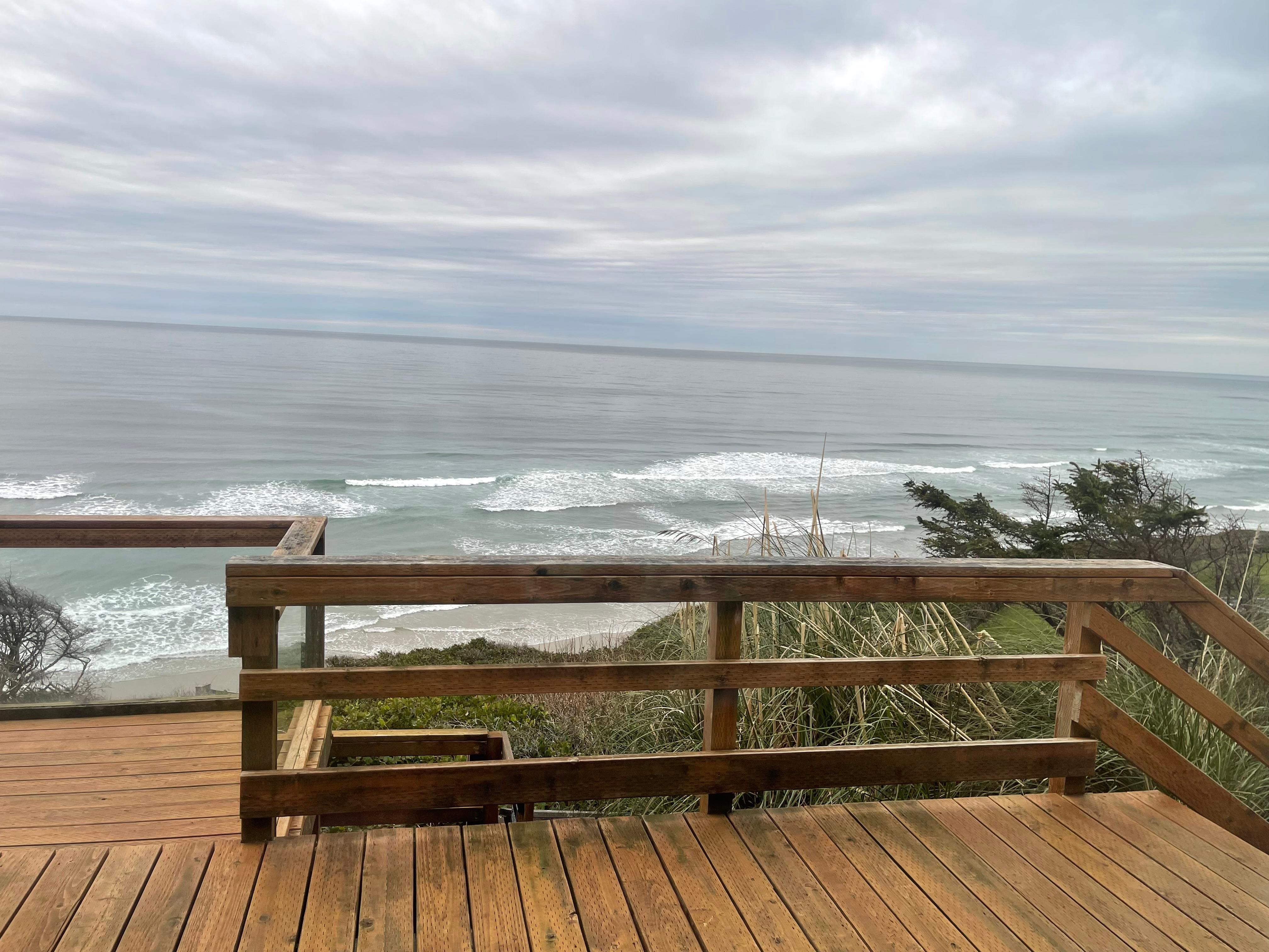 The Hidden Overlook has multiple decks to relax on while enjoying the stunning ocean vistas, listening to the ocean and the quiet surroundings, and to appreciate an evening of crystal-clear stargazing. It is the perfect place to unwind and disconnect. Make memories with your family, even a traveling pup or two, while playing, eating, and discovering your surroundings. One of the best parts of staying at this property is the chance to explore one of Oregon coast's diverse and scenic regions. Located between Yachats and Florence, this area includes Cape Perpetua Scenic Area, Heceta Head State Park and Lighthouse, the Sea Lion Caves, and many roadside scenic viewpoints. This is a spectacular part of the Oregon coast, and this home is a unique, natural, and charming way to fully immerse yourself in the beauty that you will find here. Beach access has been washed away. The closest access is at Ocean Beach Park just south of the house.
