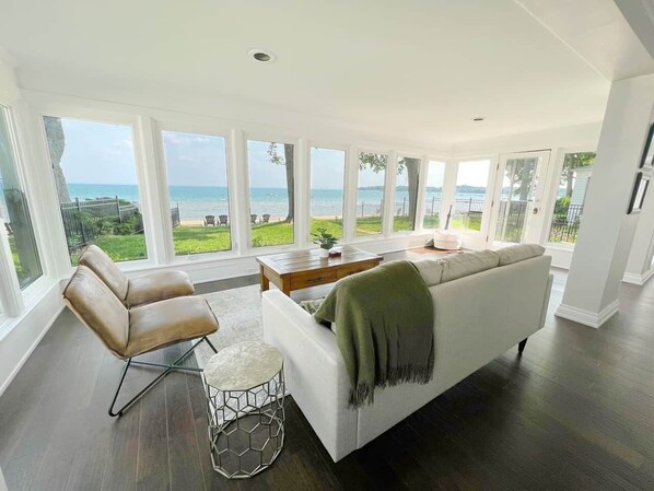 This house is one of two properties on our rare 2-acre lot right on Bay Beach. The breathtaking lake views will help you forget your worries & truly disconnect.