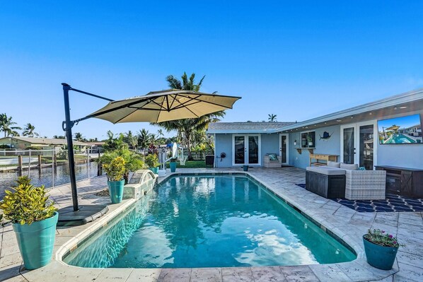 Enter this luxurious waterfront getaway designed to leave your worries behind. Located on the edge of Fort Lauderdale this large 4 bedroom/ 3 bath residence features a glorious heated pool with waterfall, plenty of space to soak up the sun, grille, fish, an outdoor dining area and seating areas all overlooking the waterway just 10 mins from the beach and shopping. This immaculate home features a strong wifi connection, luxurious linens, large open kitchen all fenced in for privacy for up to 8 guests.