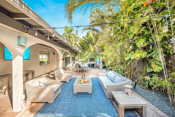 Outdoor dining - Steps from Beach / Quaint Cottage / Hot Tub / Surf Key / H0MES (Fort Lauderdale)