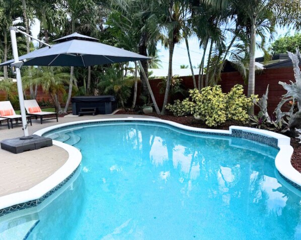 A heated pool - Stress Less Here! Peaceful Pool w/ Hot Tub~Clean & Comfy~Walk to Wilton Dr.~Near Downtown & Beach! (Wilton Manors)