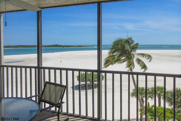 Terrace/patio - Gulf Front 2B/2B Carlos Pointe Condo 415, White Sandy Beach, Heated Pool (Fort Myers Beach)