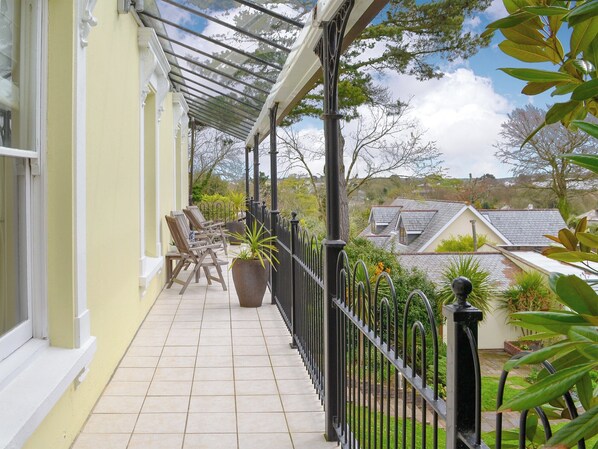 Bedroom 2: 2 x Single (3ft) Beds Ensuite: Cubicle Shower, Toilet. Night storage heaters, gas, electricity, bed linen, towels and Wi-Fi included. Travel cot and highchair available on request. Welcome pack. Balcony with outdoor furniture. 1-acre grounds (shared with other properties on-site). Indoor heated swimming pool (shared, 15m x 6m, depth 0.9m to 3m, retractable roof) with shower and changing facilities, and sauna. Private parking for 1 car. No smoking. Please note: There is a water feature in the garden.. This elegant, first floor apartment, one of several in this grand house, is set in landscaped gardens and has a shared, indoor, heated swimming pool with a retractable roof. One Acre View has a large balcony accessed directly off the living room, where you can enjoy a sundowner with views across the well-stocked gardens and beyond. A stroll down through Fowey will bring you to the picturesque waterside and the historic centre with its meandering lanes full of craft and gift shops, galleries, quaint cafés and outstanding restaurants. There are many coastal and inland walks that can be taken from Fowey. A popular walk with locals and visitors is the ‘Hall Walk’ which hugs the shoreline and climbs through the trees across the estuary. It has many beautiful vantage points to enjoy the views out to sea and across to the town. The historic seafaring town of Fowey is famous for the home of the writer Daphne Du Maurier and the location of the annual Fowey Royal Regatta in August and the Fowey Festival of Arts and Literature in May. It is a mecca for water sports enthusiasts from sailing and sea fishing to kayaking up the river - Fowey has it all! Coastal walks and boat trips along the river and out to sea, where you may spot dolphins and seals, can be taken from the quay, as can a ferry across the bay to Mevagissey. The pretty little beach at the quaintly named Readymoney Cove is a short stroll away and the perfect spot in which to explore the rock pools, go crabbing or simply lie on the beach! There are many National Trust gardens and houses in the area, as well as the Eden Project and the Lost Gardens of Heligan. Cycling, surfing and golf are all available locally. Beach 1 mile. Shop 500 yards, pub ¾ mile and restaurants 1 mile.