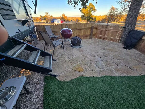 The cozy RV is the perfect home base for your trip to Fredericksburg.