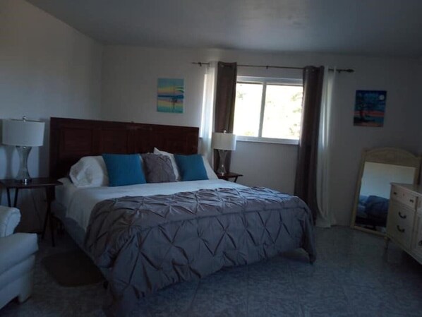 Escape to this serene, one-bedroom studio suite on the canal, where you can unwind with a private entrance and enjoy the fresh breeze. Savor your morning coffee as you sit out and take in the views, or retreat to your own island-style kitchenette with microwave and full-size fridge.