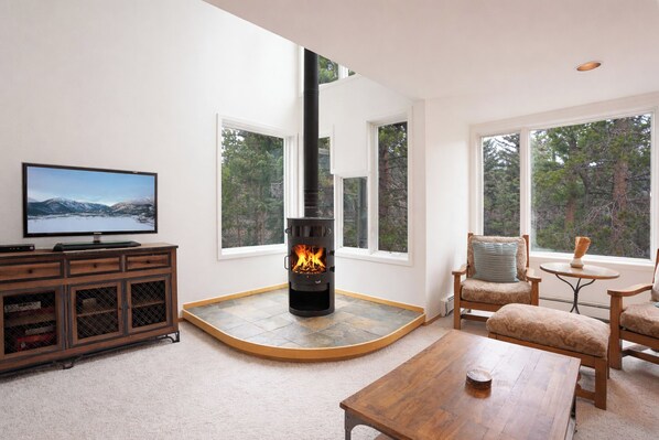 Just kick back and chat about the day’s mountain adventures or enjoy a movie on the flat-screen TV. And there’s a fully equipped kitchen with room for six at the dining room table and two more at the breakfast bar.