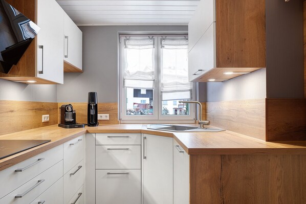 The 60 m² holiday apartment in Furtwangen, Baden-Württemberg, accommodates up to 4 guests (2 adults and 2 children). It features 1 bedroom with a 140 cm bed and a living room with a 120 cm sofa bed. There is 1 bathroom and a fully equipped kitchen with a capsule coffee machine, capsules included. Amenities include Wi-Fi, TV, baby cot, high chair, and step-free access indoors for your comfort.