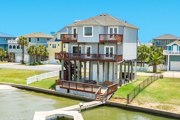 The private boat dock is perfect for fishing, crabbing, or tying up your water toys. Grill your fresh catch on the charcoal grill and dine al fresco on 2 picnic tables on the ground level patio. Explore all that Galveston has to offer at this adventurous bayfront home!