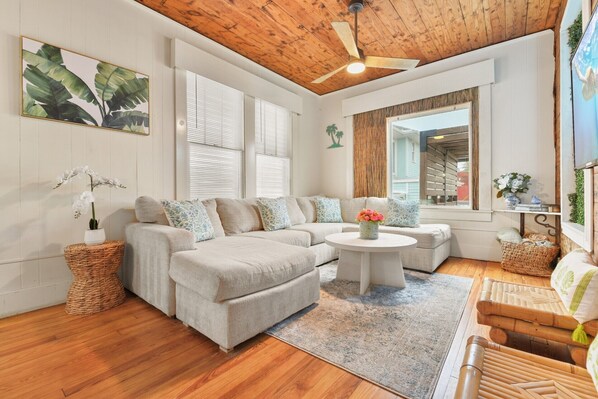 Welcome to The Grand on Ave O – a luxurious 4-bedroom, 3-bathroom vacation home in the heart of Galveston, Texas. Located directly across from the beach, this stunning retreat offers unobstructed water views and places you right in the middle of the vibrant In Town neighborhood. With room for up to 8 guests, The Grand is the perfect blend of serenity and excitement, where relaxation meets adventure just steps from the sand.