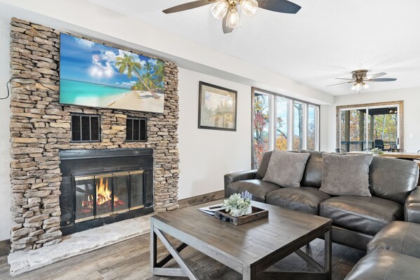 Arriving at the property, you’ll appreciate the abundance of flat area parking and be drawn to the manicured landscaping equipped with park grills for your use. Please note the parking area is shared with the neighboring properties Tanrac Cottage & Tanrac Lodge (also available for booking). The breathtaking mountain views, including Mount LeConte, can be seen from the front porches and back decks, offering inviting spaces perfect for gathering and enjoying your morning coffee or evening glass of wine.
