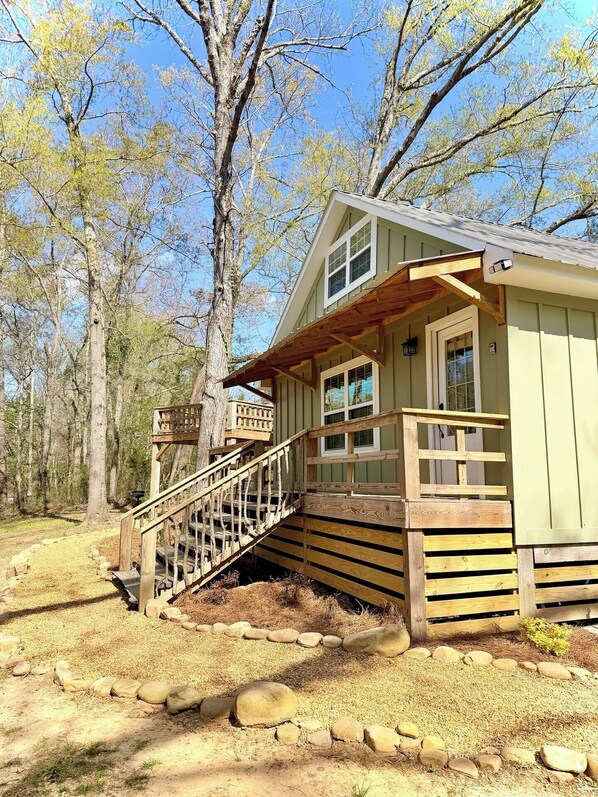 Perhaps the best feature is the large raised deck surrounded by trees overlooking Little River (running seasonally). With the sounds of the flowing river on one side and a large cotton field on the other, it's easy to just spend all day relaxing and forget to go see the sights of the local area. We have a nice fire ring built up near the river to enjoy a campfire as you wind down for the evening. We have firewood available on-site for $10/day or you can bring your own.