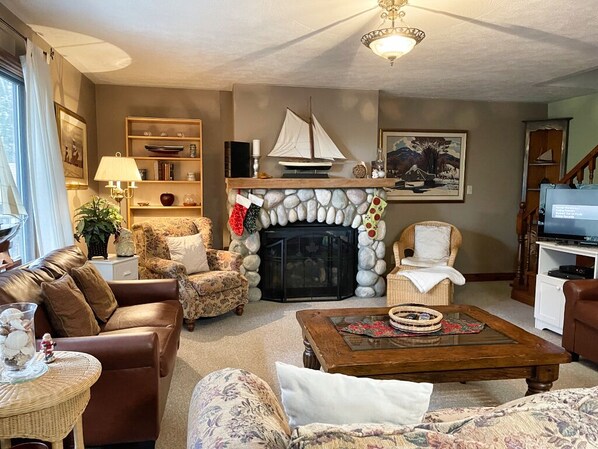 Escape to Georgian Bay Retreat, a charming Canadiana-style chalet cottage nestled in the trees with a 'Window on the Bay' view of Colpoy's Bay. Unwind by the newly installed cobblestone gas fireplace or soak in the hot tub while watching sunsets. Enjoy water access just down the street and dock for 2023 season.