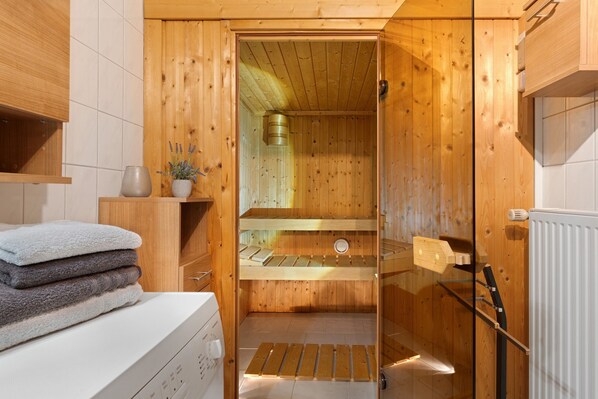 Sauna - Holiday Apartment 'Urlaub Auf Dem Mehrenshof' with Private Pool, Terrace and Wi-Fi (Gokels)