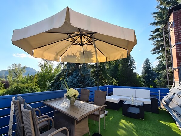Outdoor dining - Holiday Apartment 'Carpe Diem - Ferienwohnung' with Shared Garden and Wi-Fi (Görlitz)