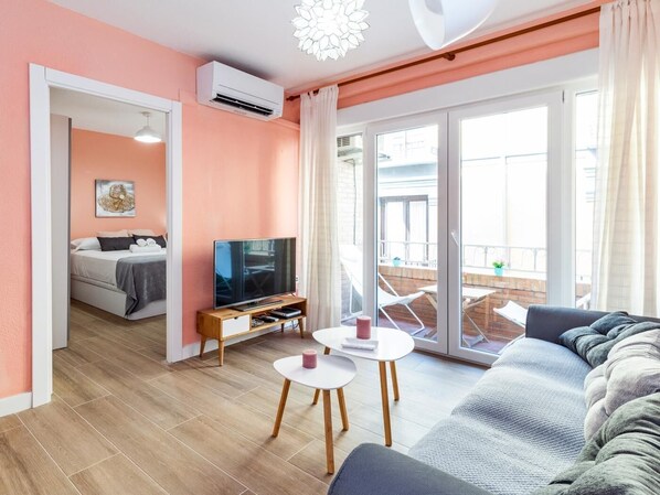 It has two bedrooms; one with a double bed and the other with a single bed, which will allow you to rest after a day exploring the city.